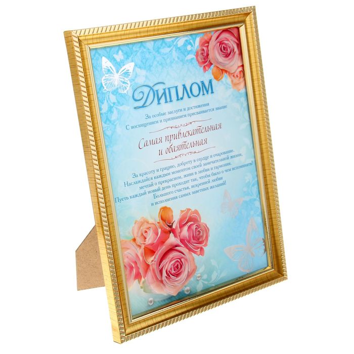 Диплом "Самая обаятельная и привлекательная" в красочном авторском исполнении — настоящая находка для тех, кто ищет необычный способ поздравить дорого человека. Он подчеркнёт торжественность момента и создаст настроение праздника!Оригинальная золотая рамка, выполненная в классическом стиле, превращает награду в достойное дополнение любого интерьера.