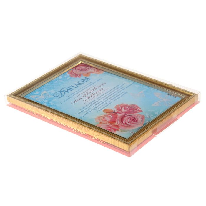 Чтобы диплом выглядел ещё более презентабельно, мы создали специальную подарочную упаковку.На оборотной стороне есть открытка с тёплыми пожеланиями.