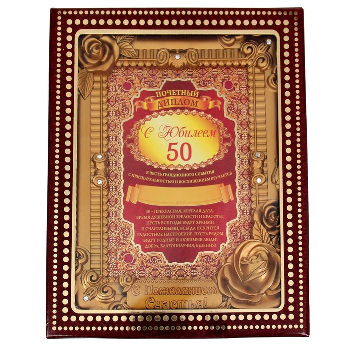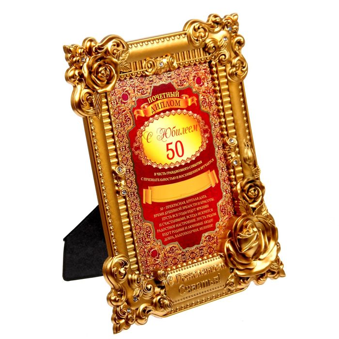 Диплом в рамке "С юбилеем 50 лет" в красочном авторском исполнении — настоящая находка для тех, кто ищет необычный способ поздравить именинника. Он подчеркнёт торжественность момента и создаст настроение праздника! Оригинальная золотая рамка, выполненная в классическом стиле, превращает награду в достойное дополнение любого интерьера.