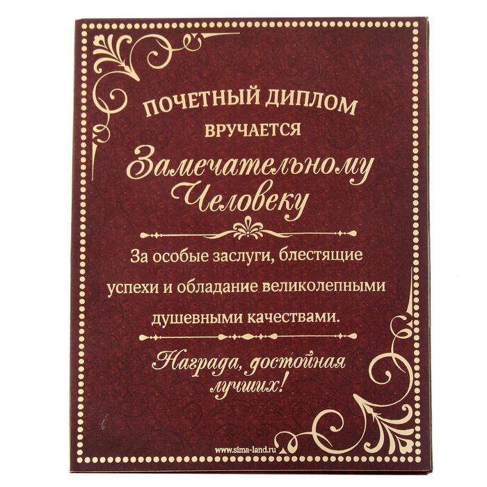 Диплом преподносится в специальной подарочной упаковке. На оборотной стороне есть открытка с тёплыми пожеланиями.
