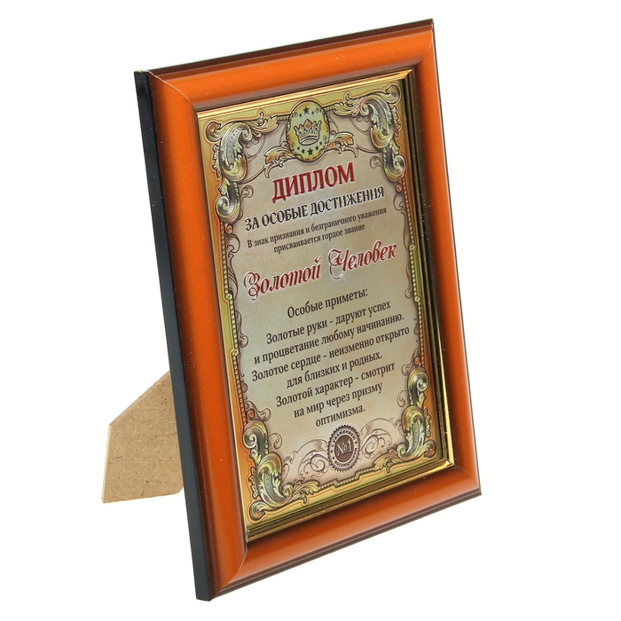 Диплом в рамке удобно располагается на любой горизонтальной поверхности, благодаря стандартной подставке. Упакован в картонную коробку с теплым поздравлением на обороте.