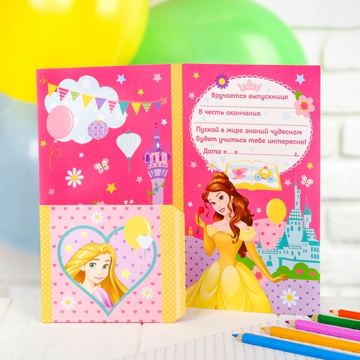 Диплом выпускницы детского сада с местом под шоколадку Принцессы