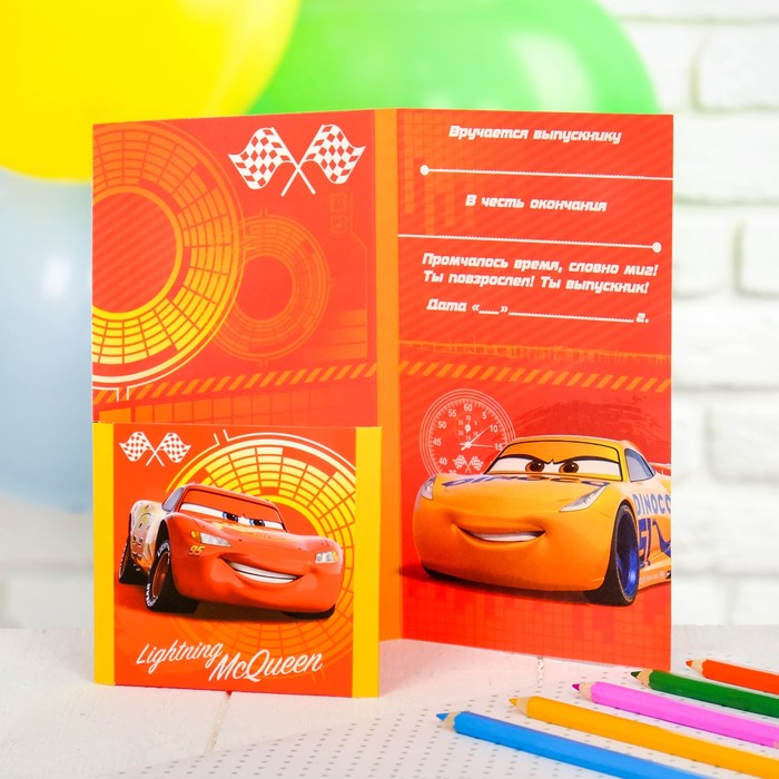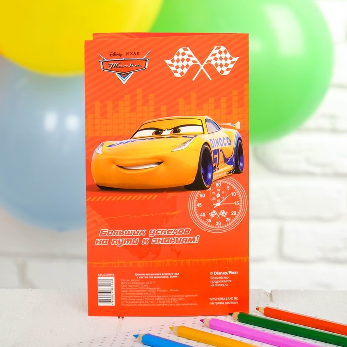 Диплом выпускника детского сада с местом под шоколадку Тачки