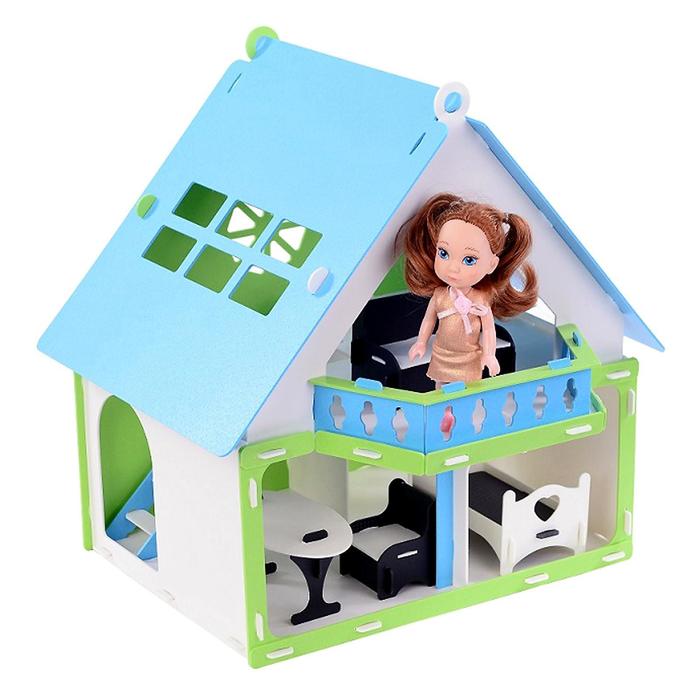 Домик для кукол "Дачный дом Варенька", бело-голубой, с мебелью