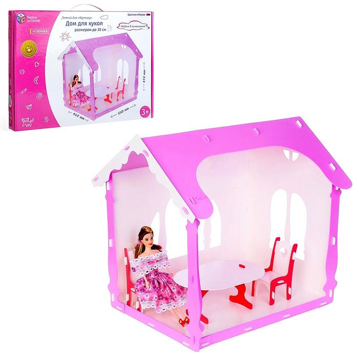 Домик для кукол "Летний дом Вероника", бело-розовый, с мебелью