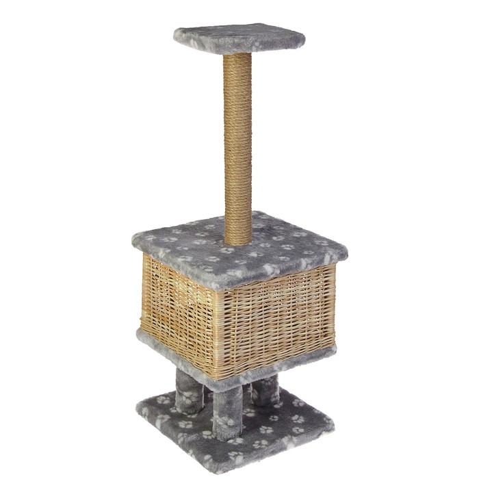 Домик-когтеточка "Квадратный на подставке", лоза/джут, 39 х 39 х102 см, микс цветов