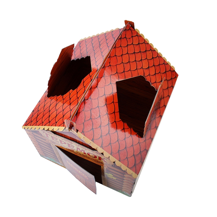 Домик выполнен из бумаги, что делает уход за изделием максимально лёгким. Будка стилизована под всеми любимый теремок, который всегда ждёт вашего питомца в гости!