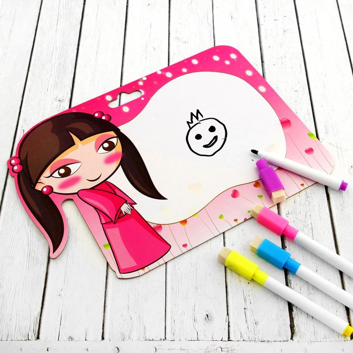 Доска для рисования "Девочка" + маркер со стиралкой МИКС
