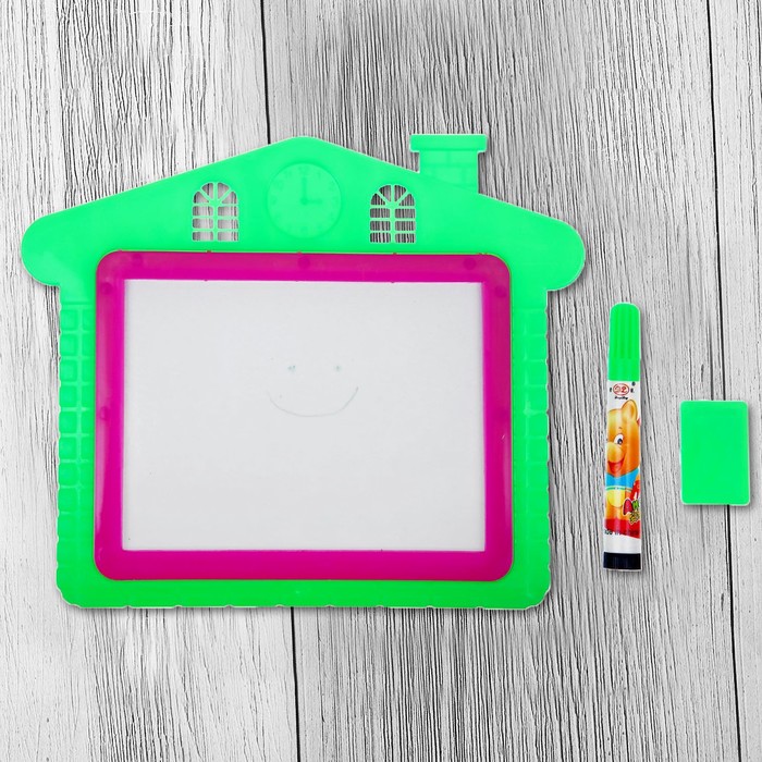 Доска для рисования "Домик" + маркер, стиралка, цвета МИКС