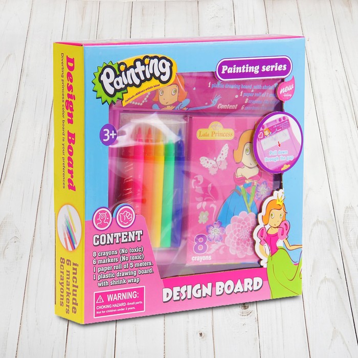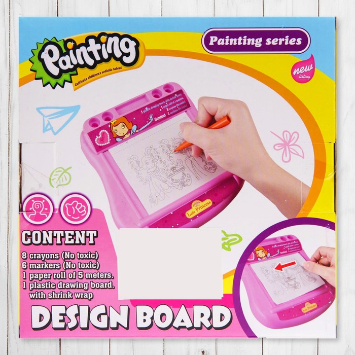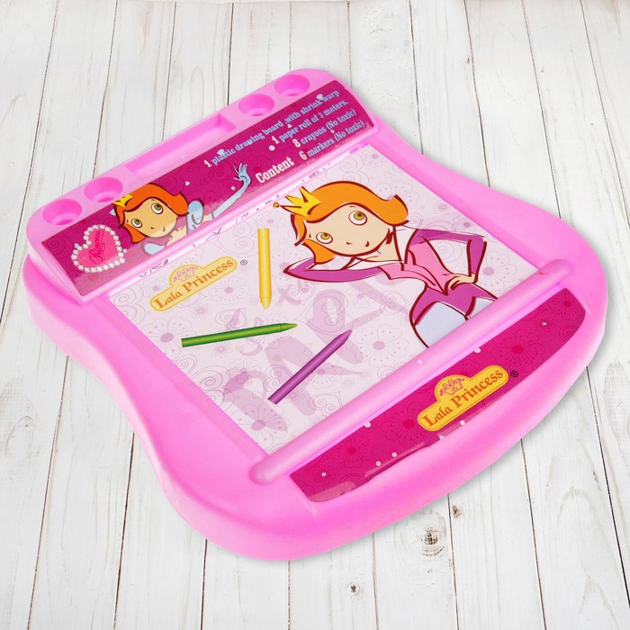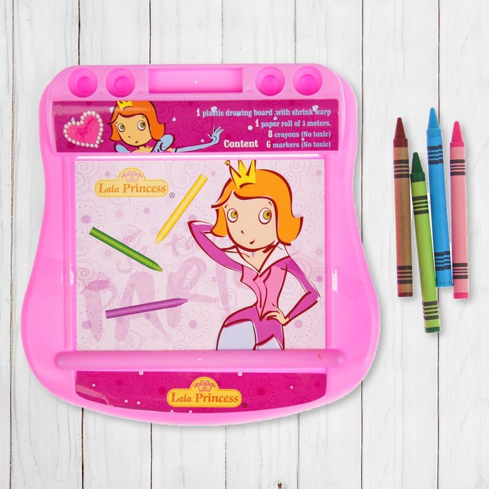 Доска для рисования "Принцесса", рулон 5 м, маркеры 6шт., восковые карандаши 8 шт.