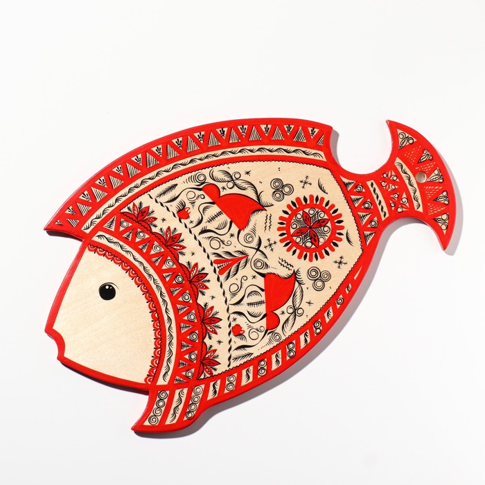 Доска разделочная «Рыбка», 35×0,8×23 см, мезенская роспись
