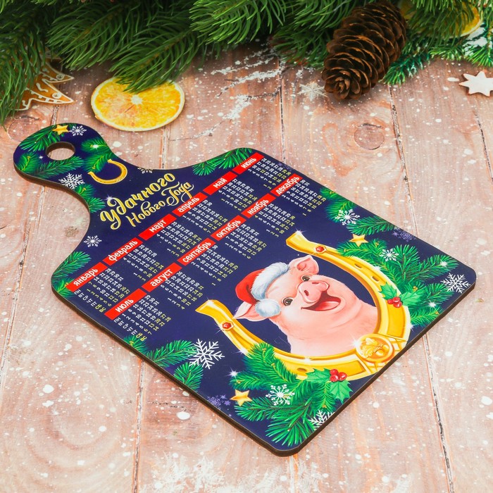 Доска разделочная "Удачного Нового года", календарь 2019, 15 х 25 см
