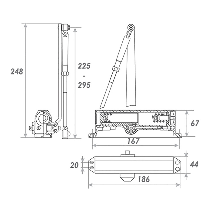 Доводчик дверной №3S, до 80 кг, морозостойкий, серый