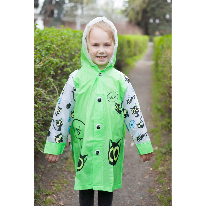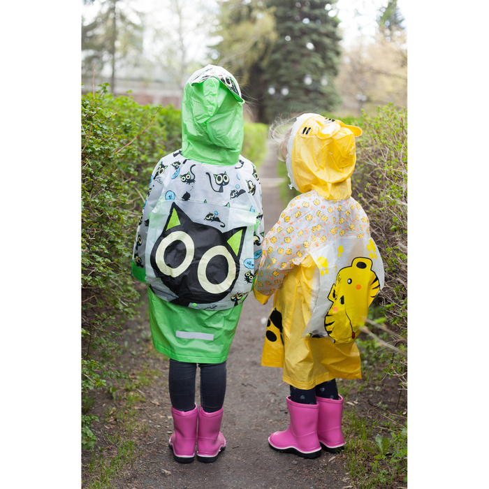 Дождевик детский "Котенок", надувной капюшон, карман под рюкзак, рост 110-120