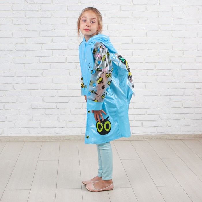 Дождевик детский "Котик", надувной капюшон, карман под рюкзак, рост 120-130, цвета МИКС