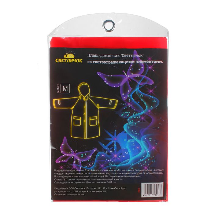 Дождевик ПВХ, со светоотражающими элементами, (М), рост 122-128, красный