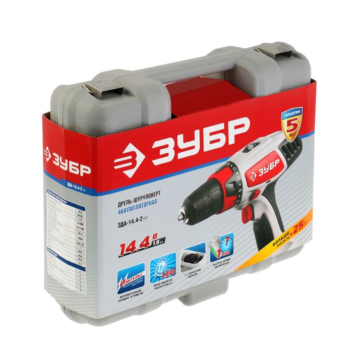 Дрель-шуруповёрт "ЗУБР", 14.4 В,10 мм, 0-400/0-1150 об/мин, 1.5А/ч, кейс, аккумуляторная