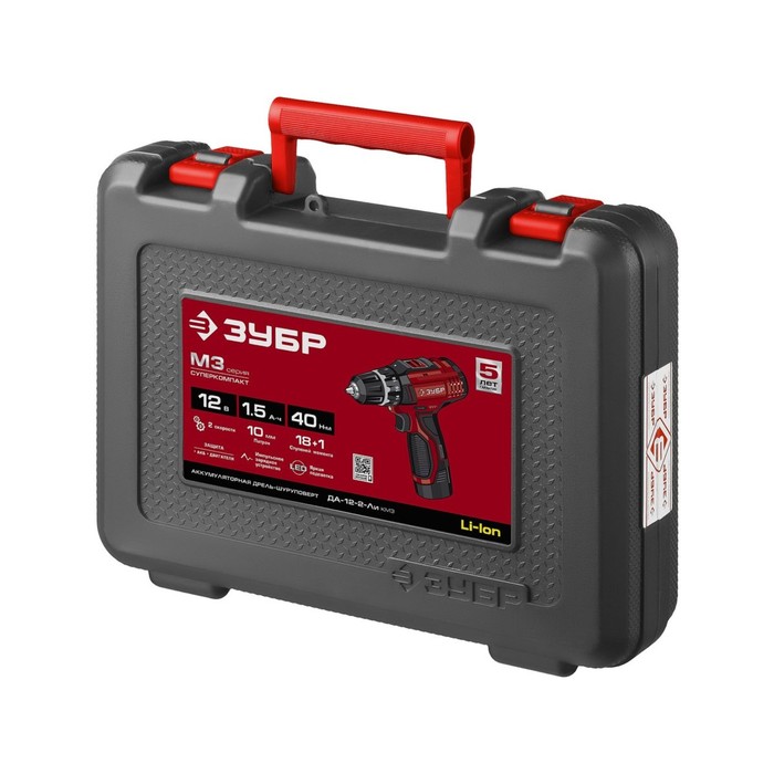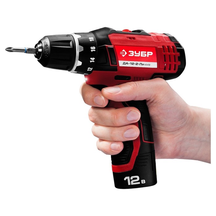 Дрель-шуруповерт "ЗУБР" ДА-12-2-Ли КМ3, аккумуляторная, 12В, 1.5 Ач, Li-Ion, БЗП 0.8-10 мм