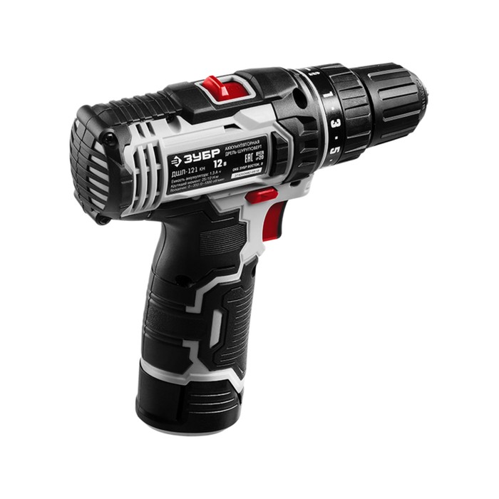 Дрель-шуруповерт "ЗУБР" ДШЛ-121 КН, аккум., 12 В, 350/1300 об/мин, БЗП 0.8-10 мм, 2х1.3 Ач