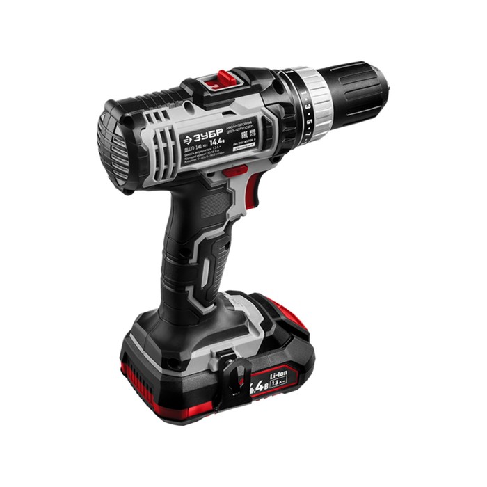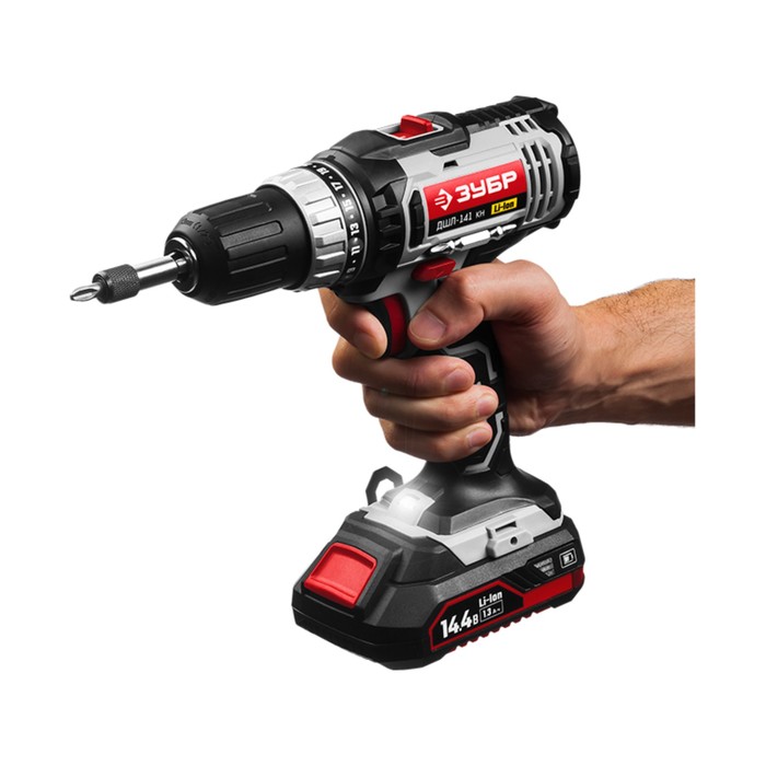 Дрель-шуруповерт "ЗУБР" ДШЛ-141 КН, аккум., 14.4 В, 400/1400 об/мин, БЗП 1-13 мм, 2х1.3 Ач