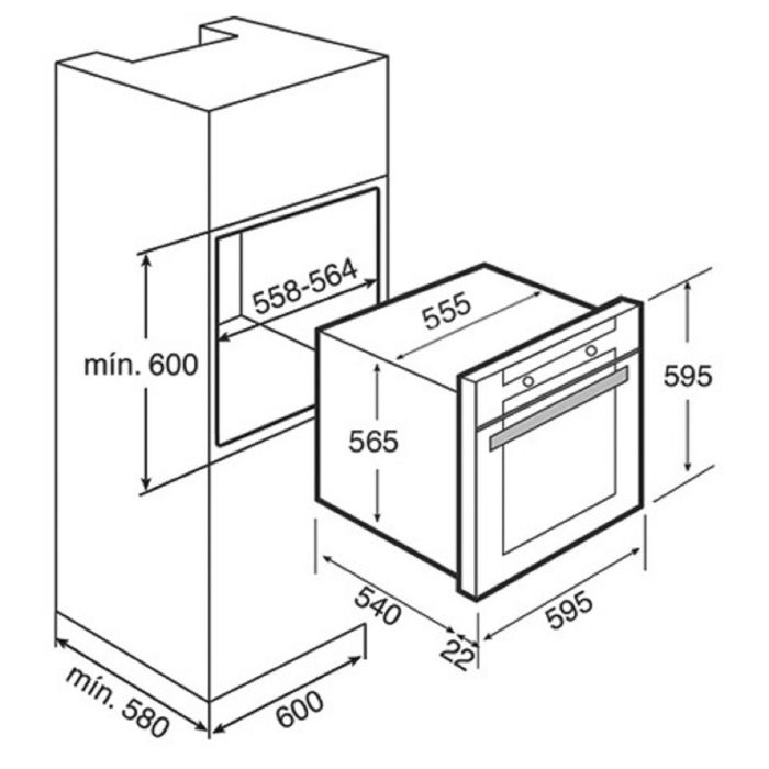 - Размеры ниши для встраивания (В × Ш × Г): 60 × 56 × 58 см.