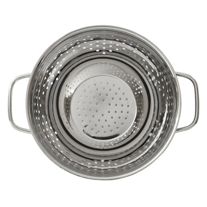 Такой дуршлаг изготовлен из нержавеющей стали высокого качества. Небольшие отверстия по всей поверхности изделия позволят тщательно промыть фрукты, овощи или макароны. Благодаря корпусу на ножках вы сможете поставить приспособление в раковину или на стол. Это освободит ваши руки, избавив от необходимости держать предмет на весу.