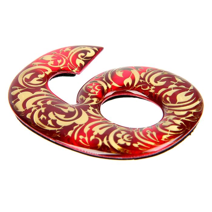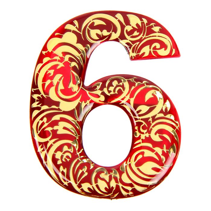 Дверная цифра "6", красный фон, тиснение золотом