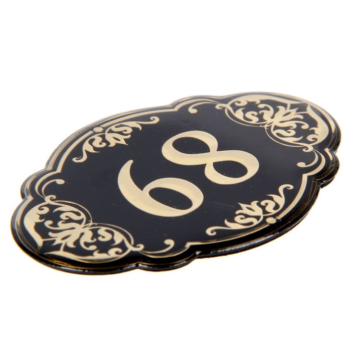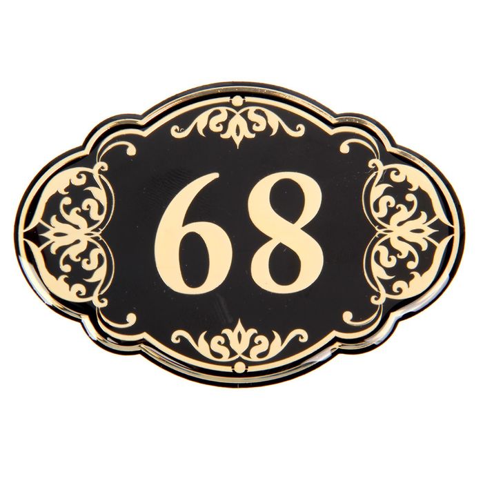 Дверной номер "68", черный фон, тиснение золотом