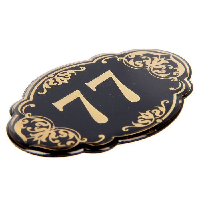 Дверной номер "77", черный фон, тиснение золотом