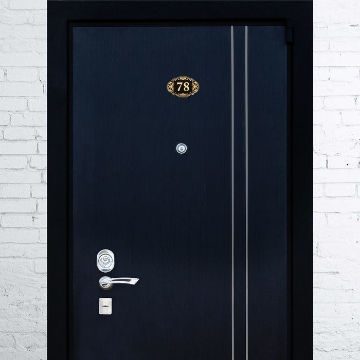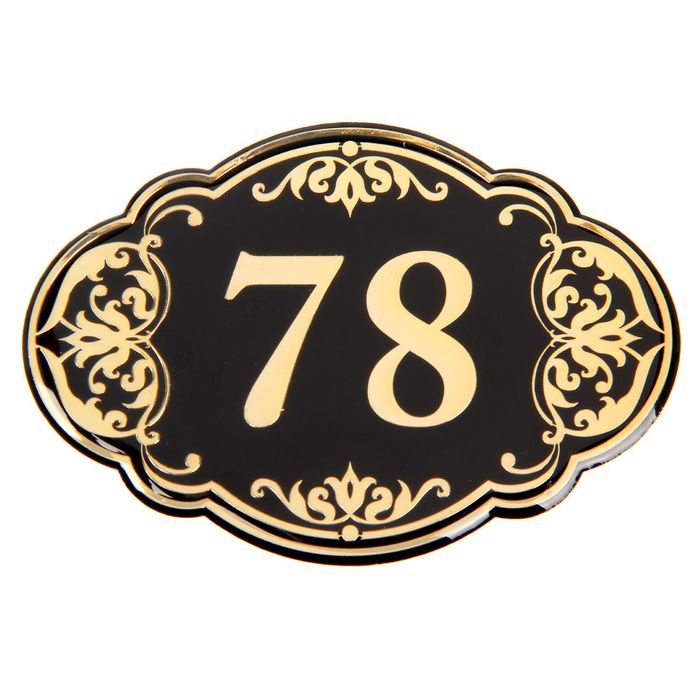 Дверной номер "78", черный фон, тиснение золотом