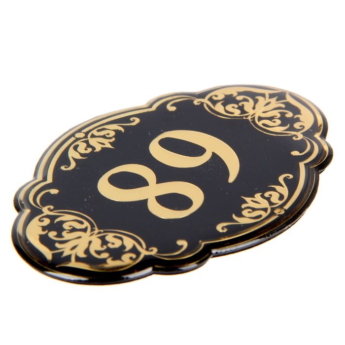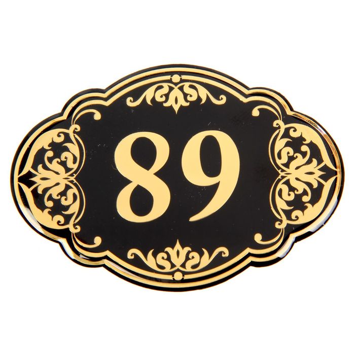 Дверной номер "89", черный фон, тиснение золотом