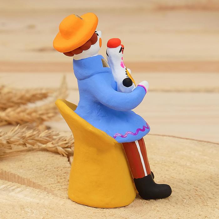 Дымковская игрушка "Мужик сидячий с петухом" 11 см микс