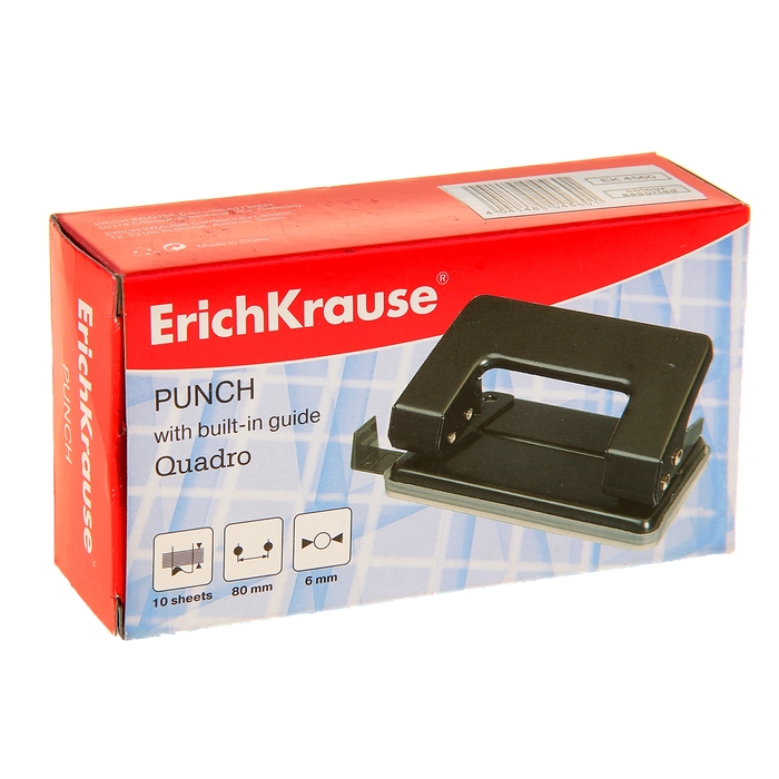 Дырокол до 10 листов Erich Krause Quadro, диаметр прокола 6мм, расстояние между проколами 80мм, микс