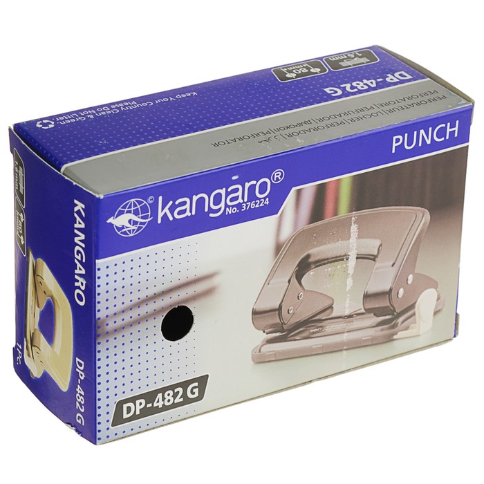Дырокол до 16 листов Kangaro DP-482G, металлический, с линейкой, синий