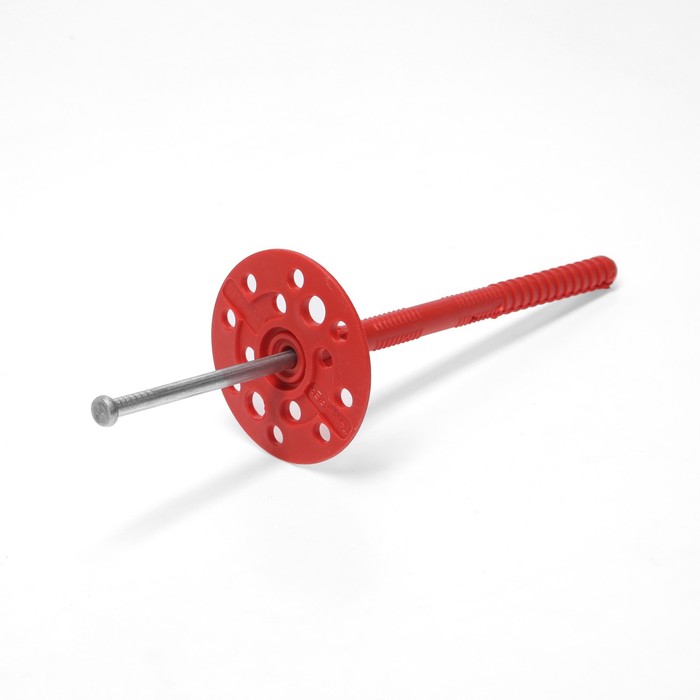 С помощью дюбеля с металлическим гвоздём вы закрепите все типы теплоизоляционных материалов. Изделие обладает высокой степенью жёсткости благодаря наличию специальных рёбер в месте соединения пластикового стержня и шляпки.