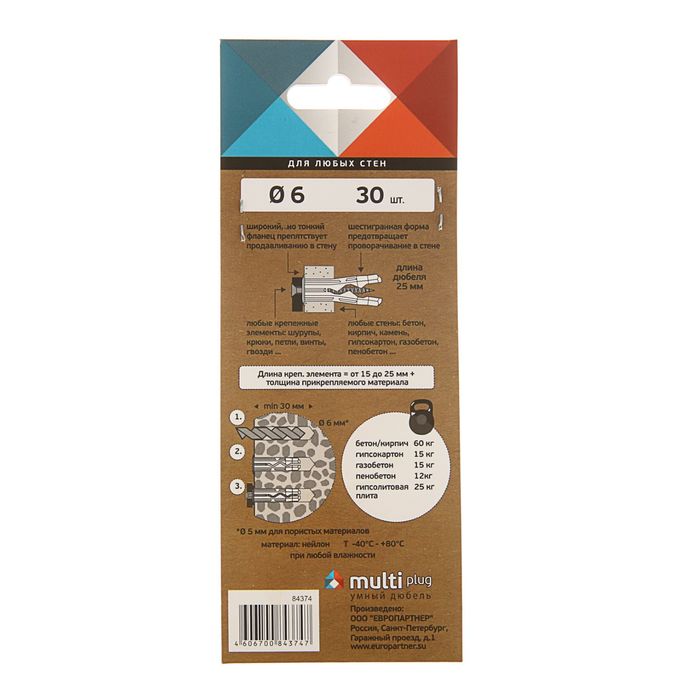 Дюбель MULTI plug 6х25 мм, в пакете 30 шт.