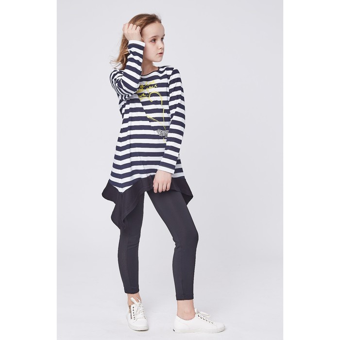 Джемпер для девочки "Каприз", рост 140 см (72), цвет темно-синий, принт полоска