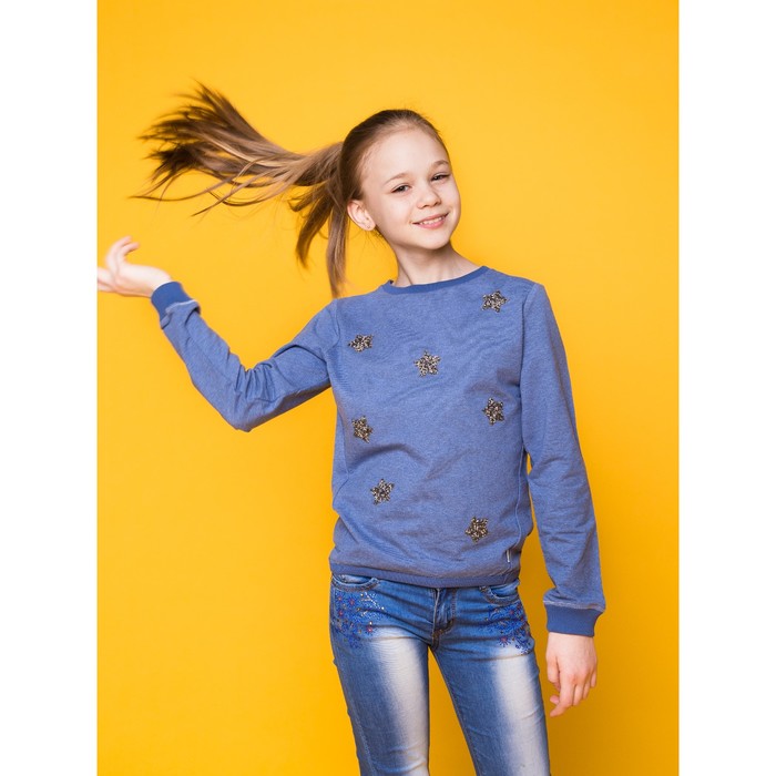 Джемпер для девочки трикотажный, рост 152-158 см, цвет синий меланж 41021704/1230