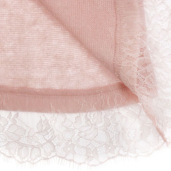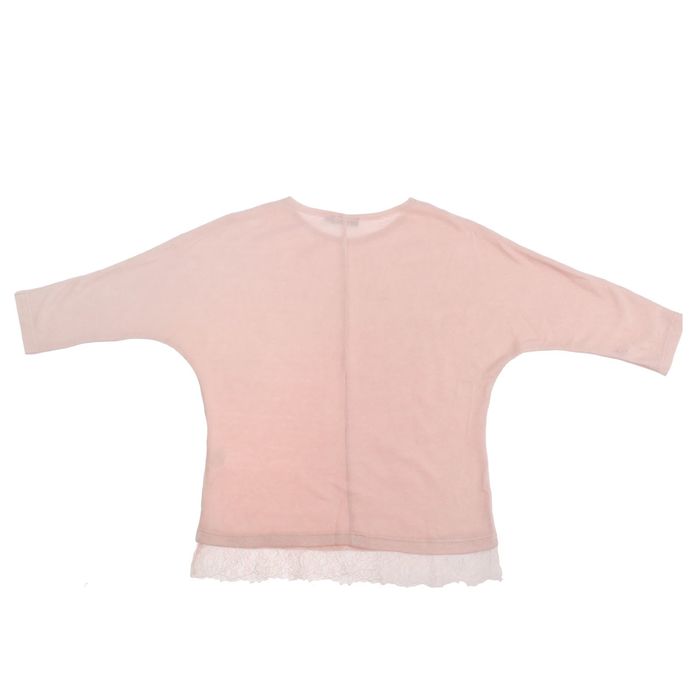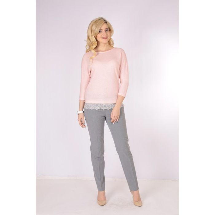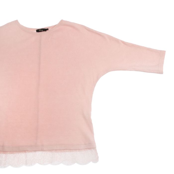 Данный джемпер — это элегантная модель прямого силуэта с цельнокроеными рукавами и кружевом по низу изделия.