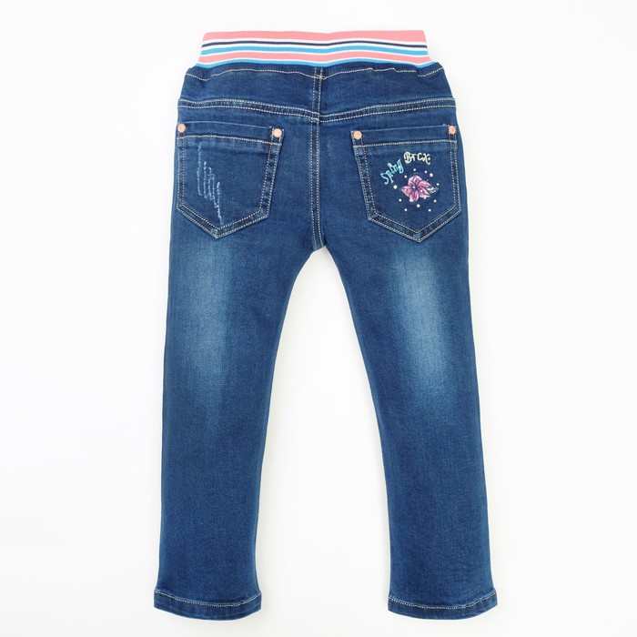Джинсы для девочки вышивка цветы/стразы А.2828, синий, рост 104