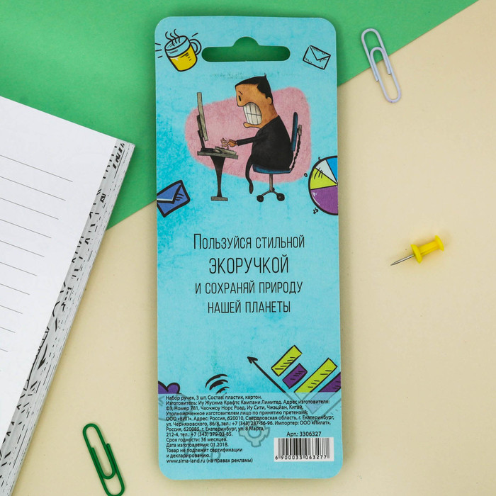 Экоручки "Ручка трудоголика", 3 шт поможет организовать ваше рабочее пространство и время. Востребованные предметы в удобной упаковке будут всегда под рукой в нужный момент.