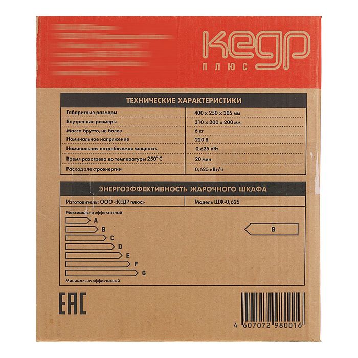 Электрическая духовка "Кедр" ШЖ-0,625, 220 В, 2 поддона, нержавеющая сталь, черный
