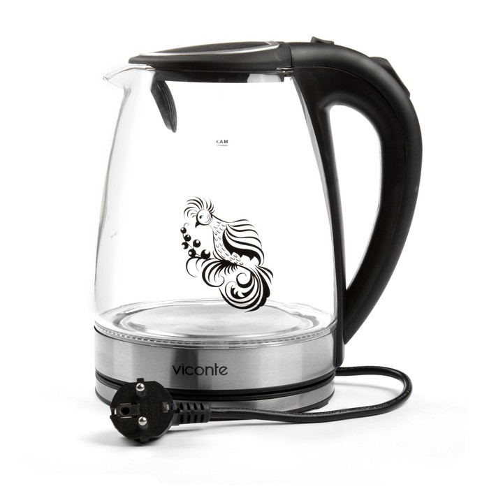 Электрочайник VC-3243, 2200 Вт, 2,0 л, пластик, вращение чайника 360°, подсветка, черный