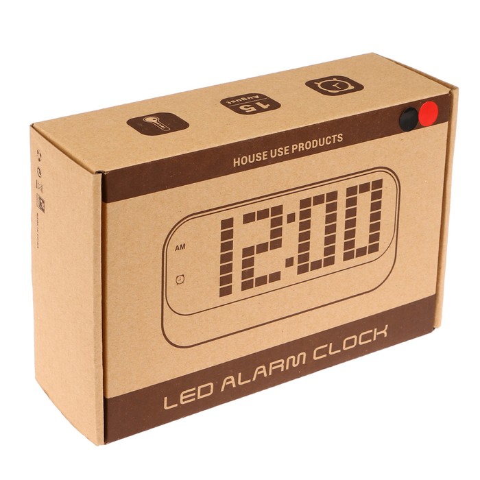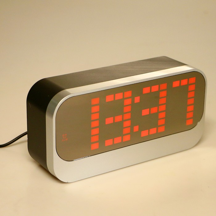 Электронные часы-будильник,(красн.циф) дата,температура,от сети, серебр-чёрный, 5х17х8.5 см