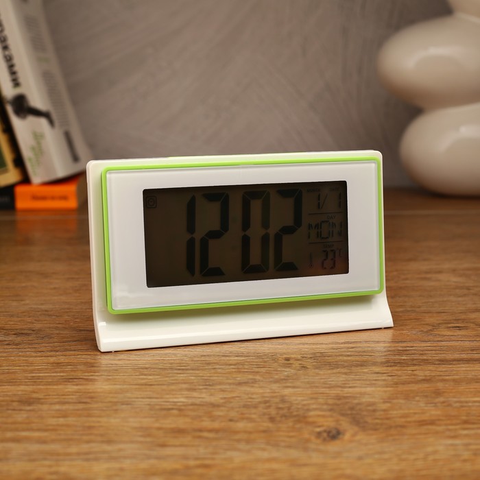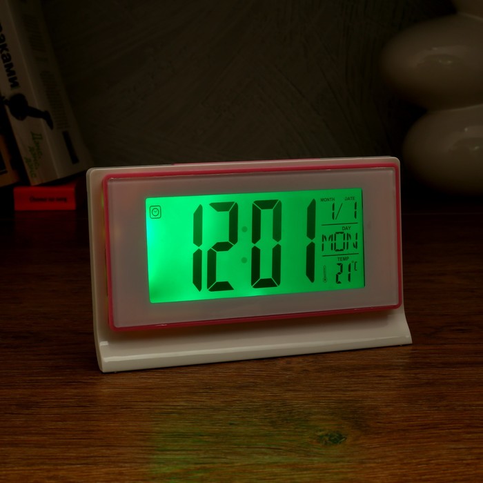 Электронные часы-будильник прямоуг, подсветка, температура, дата, 3ААА, 13,5*8см микс