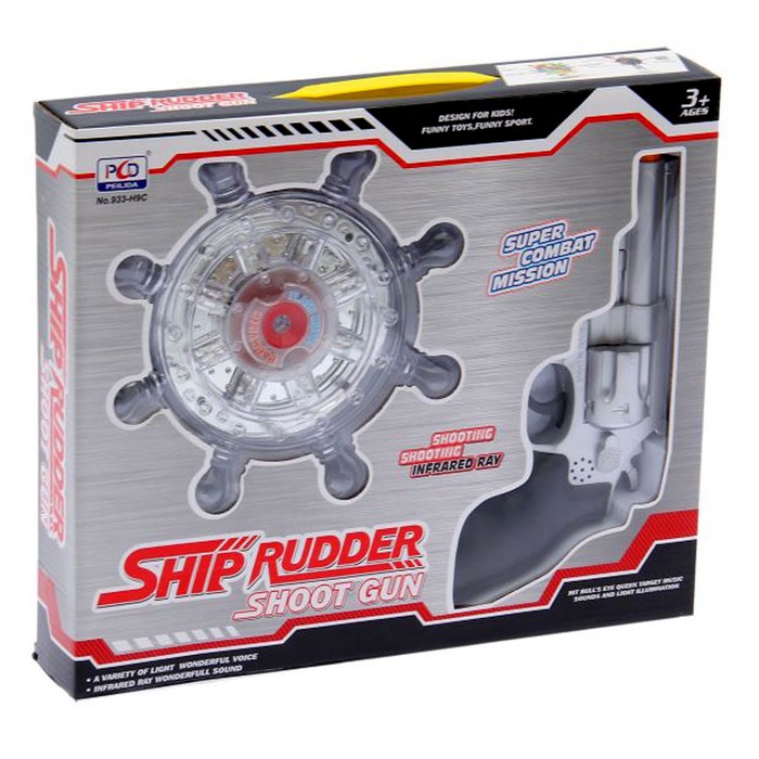 Яркие эффекты дополнят развлечение: спустите курок, и револьвер воспроизведёт звуки выстрелов, а если попадёте в центр мишени, прозвучит победный сигнал. Играть можно даже в темноте, ведь рулевое колесо светится — промахнуться не получится!