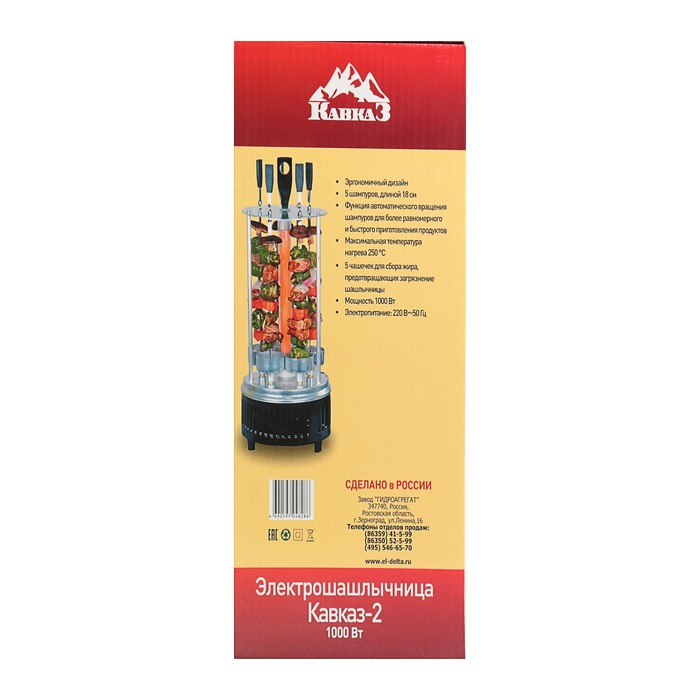 Мы предлагаем широкий ассортимент бытовой электроники. Электрошашлычница КАВКАЗ-2, 1000 Вт, 5 шампуров, красный — это полезный и актуальный прибор, который прослужит долго и сделает вашу жизнь проще.
