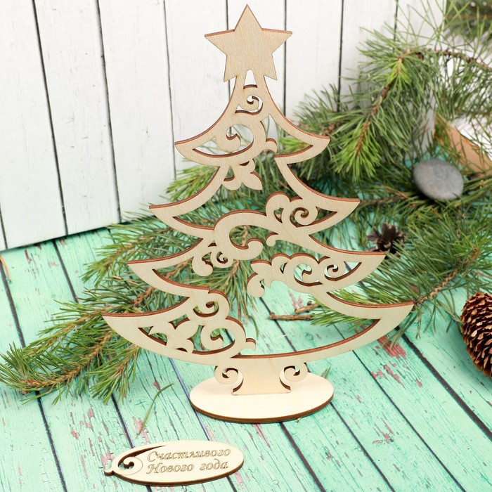 Ёлочка на подставке с биркой "Счастливого Нового года", фанера 4 мм