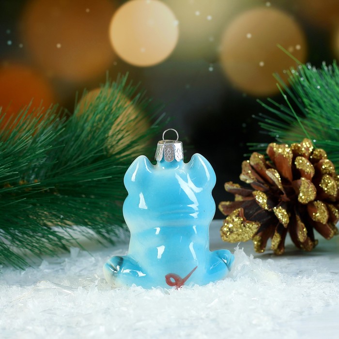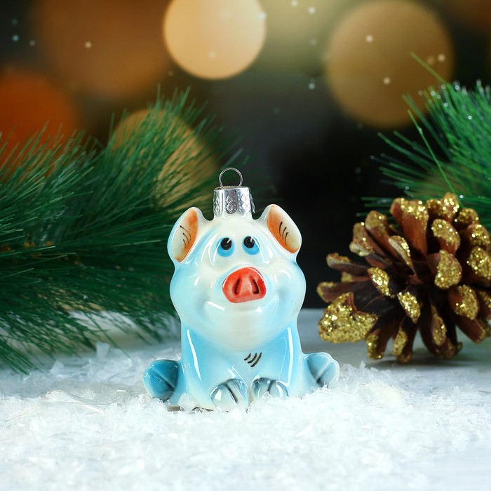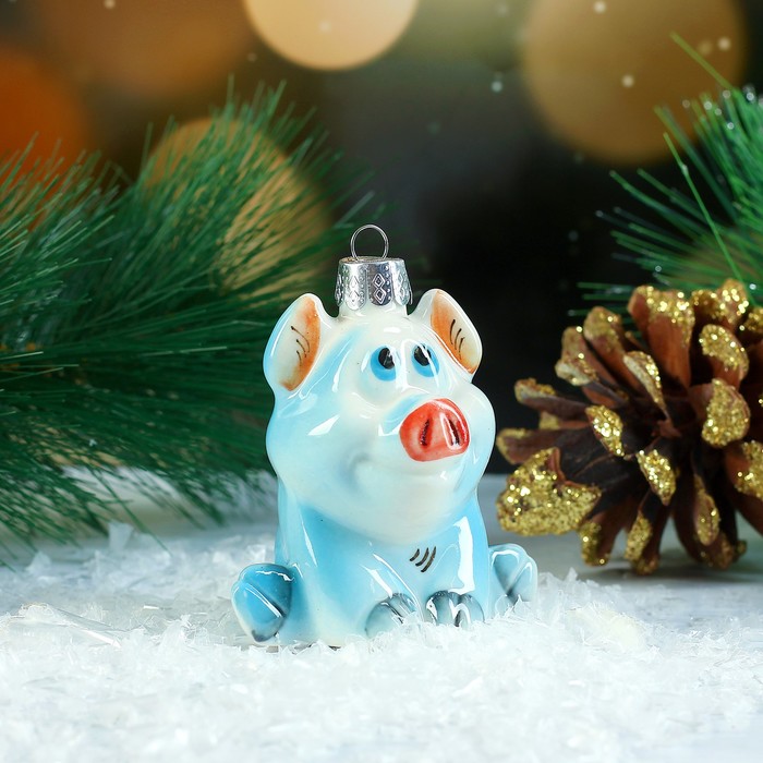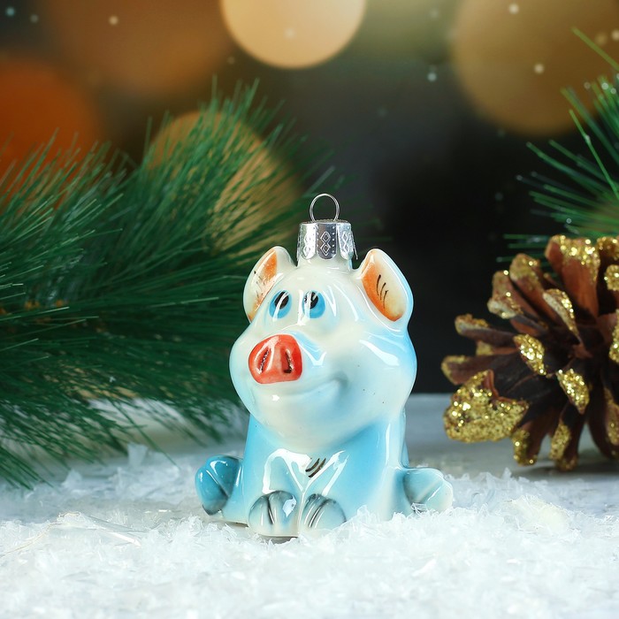 Ёлочная игрушка фарфоровая "Свинка Чуня", 7 см, голубая