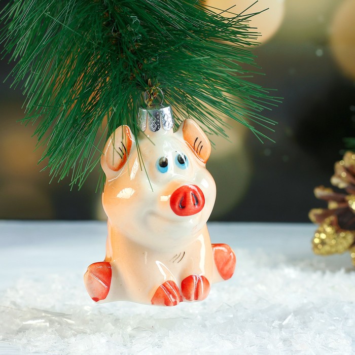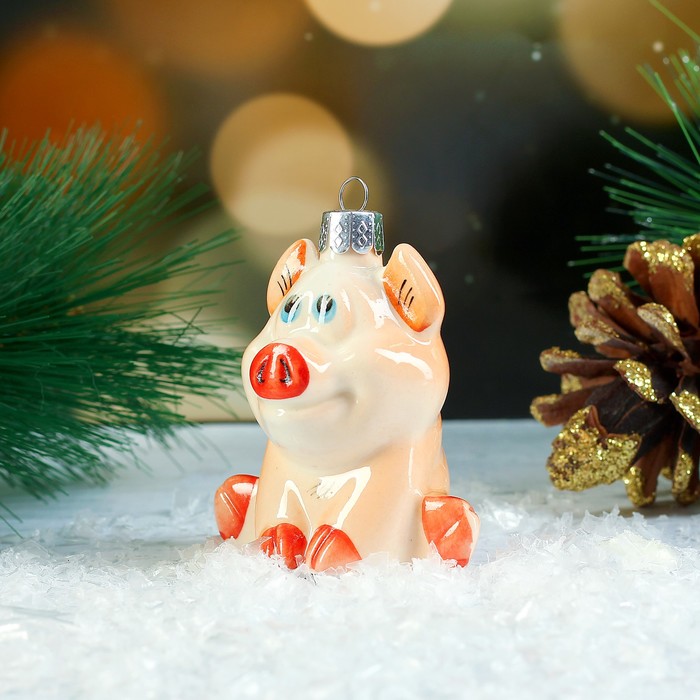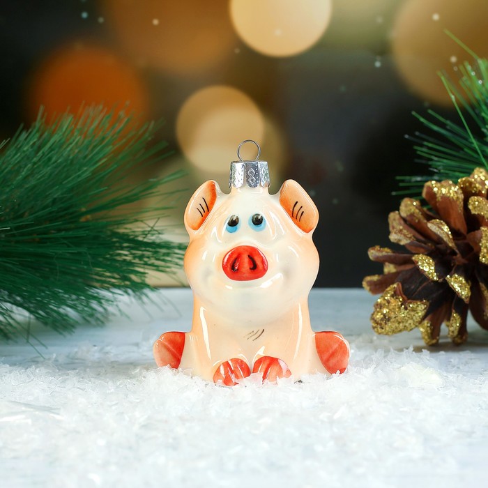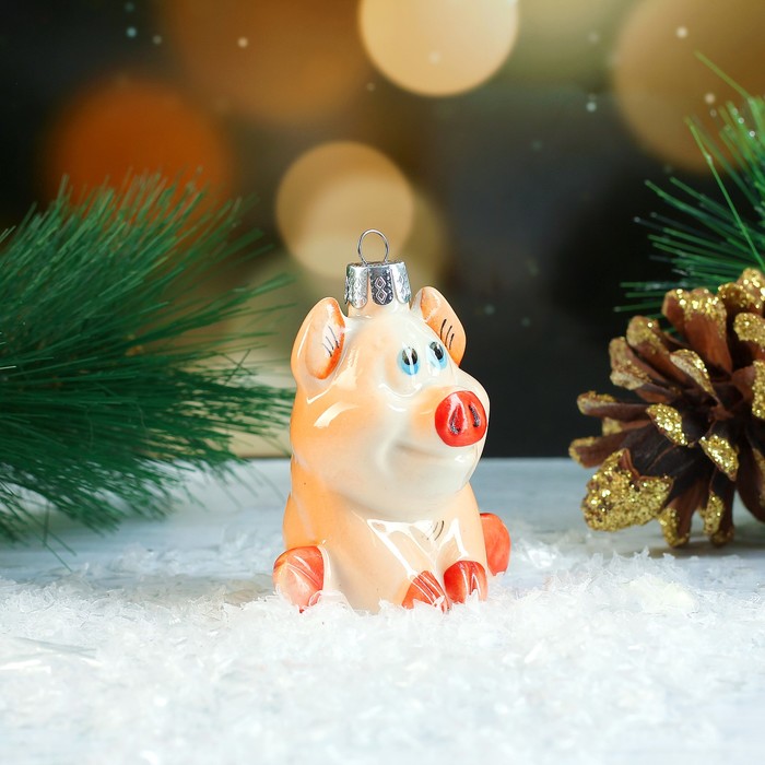 Ёлочная игрушка фарфоровая "Свинка Чуня", 7 см, оранжевая